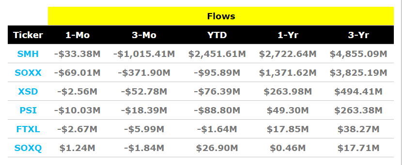 SMH is clearly an investor favorite right now relative to the other ETFs given its flows. However, the historical returns for the funds show that they are very similar in terms of performance.
