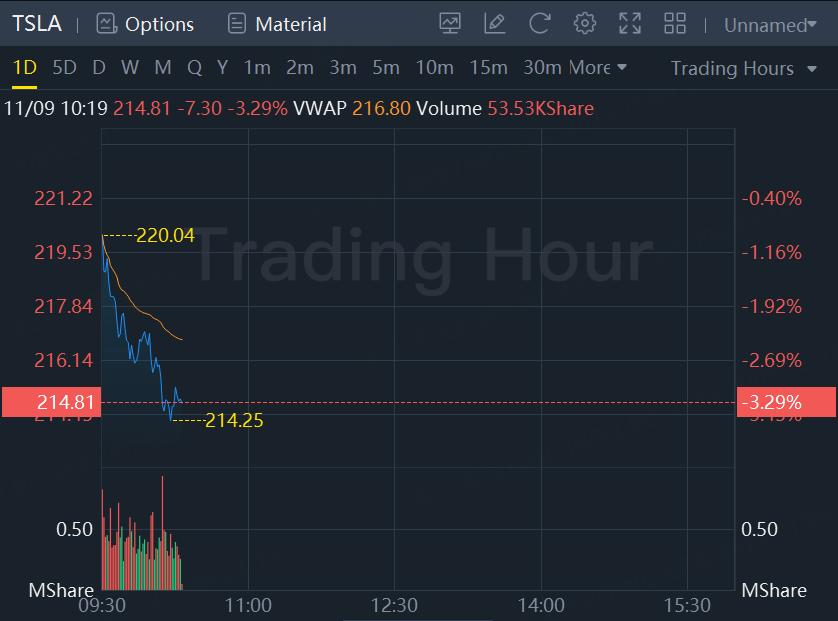 Tesla shares dropped more than 3% in morning trading.