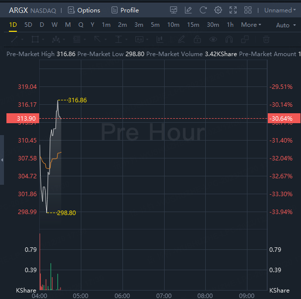 Argenx stock (BE:ARGX) $(ARGX)$ tumbled over 30% in premarket trading.