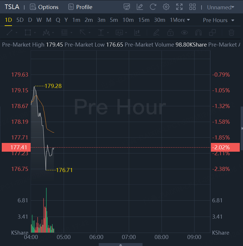 Tesla shares look set to open down Tuesday after closing with a loss of 3.7% to $181.06 in the previous session.