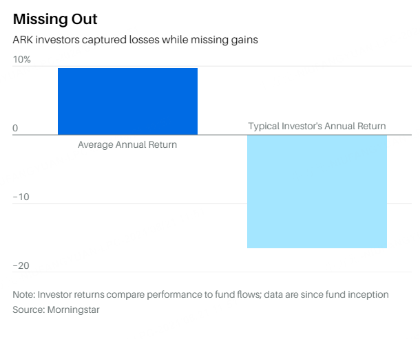 But the average ARK investor has seen results far worse than the fund itself, according to data from fund research Morningstar.