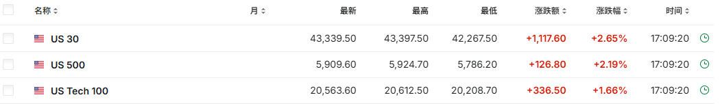 值得注意的是,在演讲上,特朗普还花了几分钟赞扬了特斯拉CEO埃隆·马斯克(Elon Musk),马斯克为特朗普的竞选活动投入了大约1.2亿美元。特朗普曾表示,他将任命马斯克领导一个政府效率委员会。特斯拉(TSLA.US)盘前也出现近13%的涨幅。