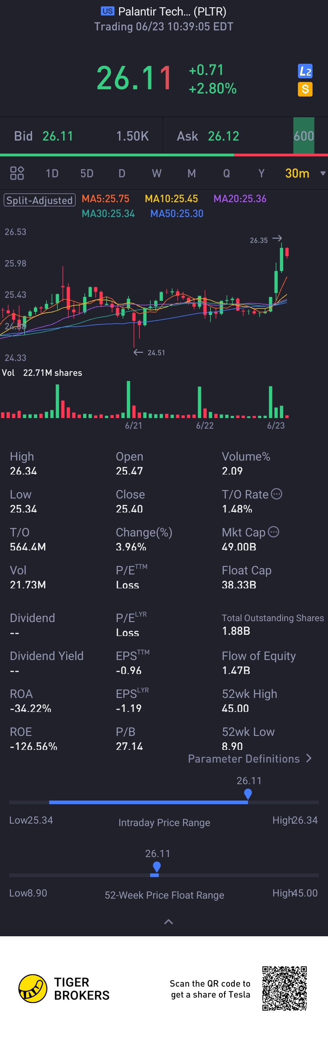 $Palantir Technologies Inc.(PLTR)$ .. Is finally moving back to its original level...