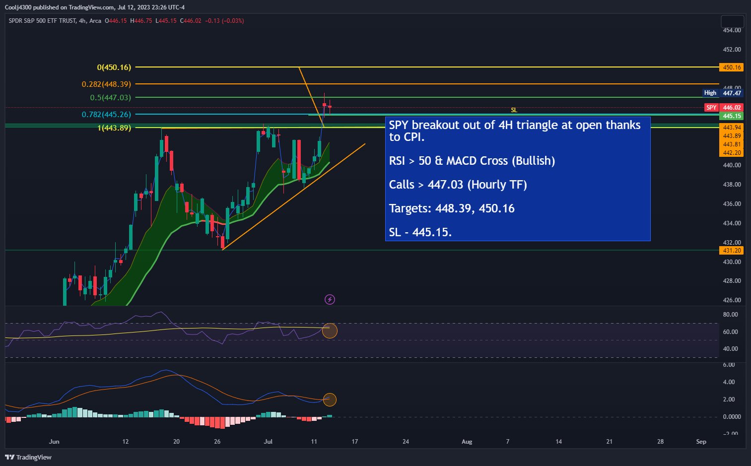$SPDR S&P 500 ETF Trust(SPY)$ $S&P 500(.SPX)$ $E-mini S&P 500 - main 2309(ESmain)$ intraday options trader @SPY Options~Actionable Levels~Compound’s comments on $S&P 500(.SPX)$’ 15mins chart on twitter.