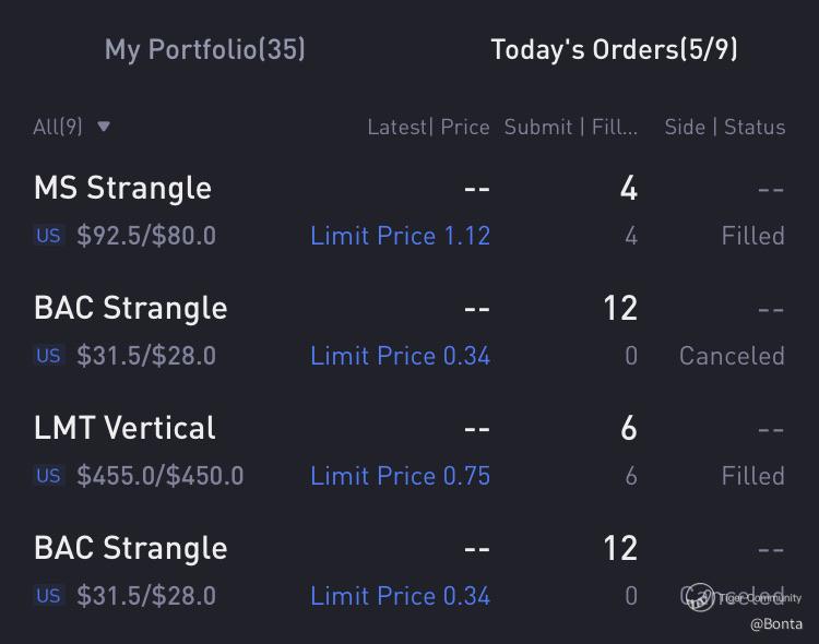 $Bank of America(BAC)$ strangle spread, despite entering sell orders at the bottom spectrum of sell orders.