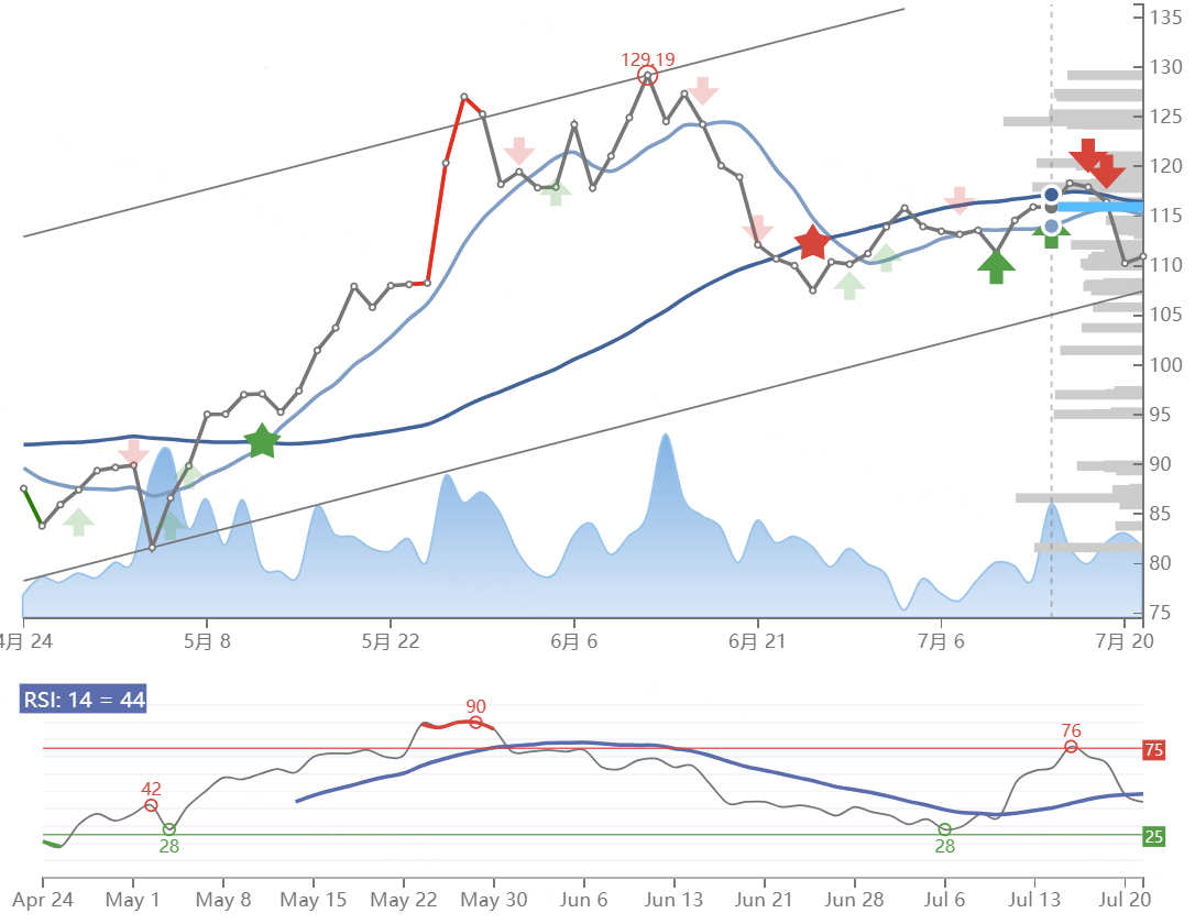The Advanced Micro Devices $Advanced Micro Devices(AMD)$ stock price gained 0.635% on Friday, 21st Jul 2023, rising from $110.25 to $110.95. During the last trading day the stock fluctuated 2.52% from a day low at $109.54 to a day high of $112.30. The price has risen in 6 of the last 10 days but is still down by -1.96% for this period. Volume fell on the last day by -8 million shares and in total, 68 million shares were bought and sold for approximately $7.51 billion. You should take into consideration that falling volume on higher prices causes divergence and may be an early warning about possible changes over the next couple of days.
