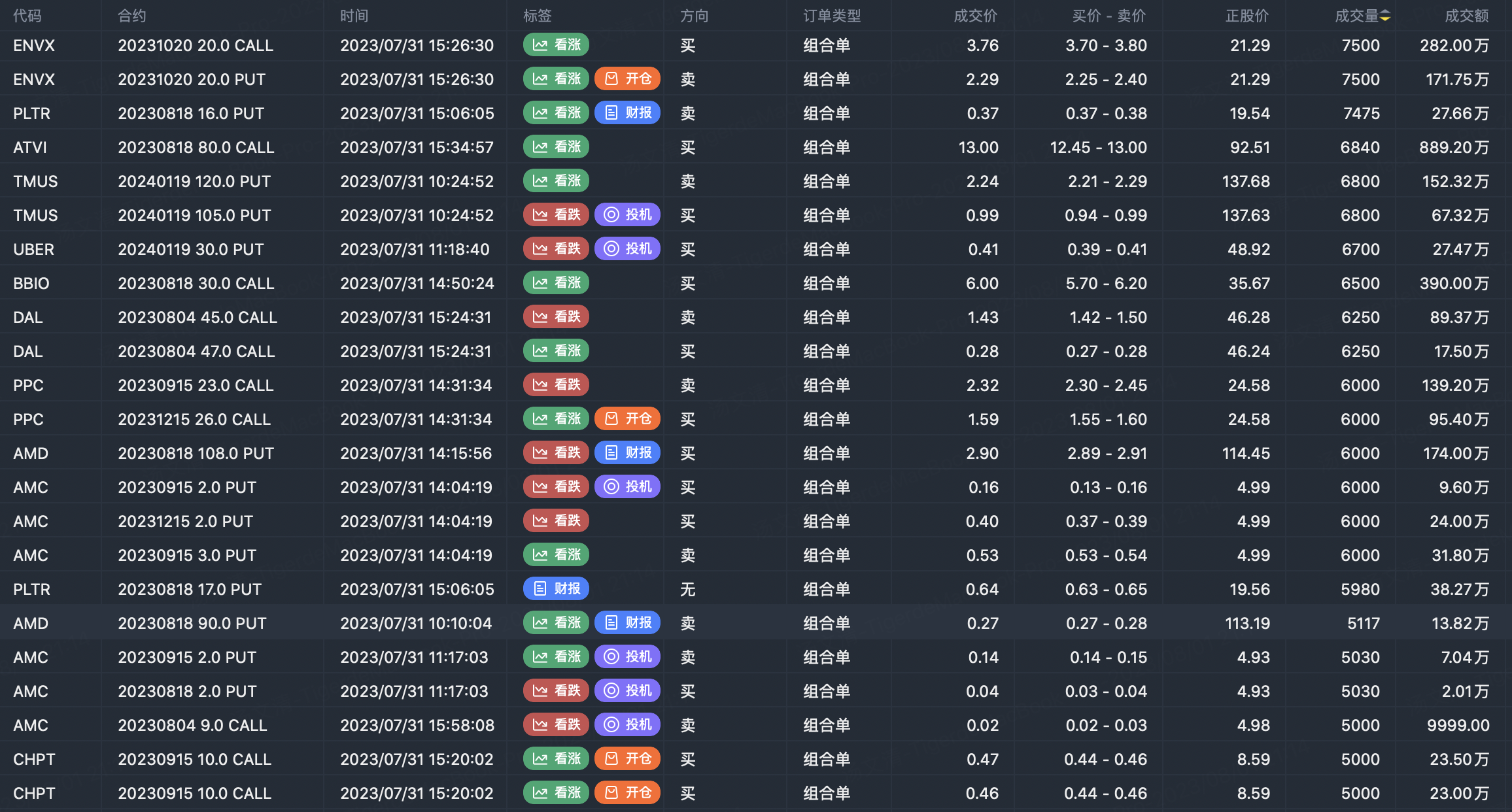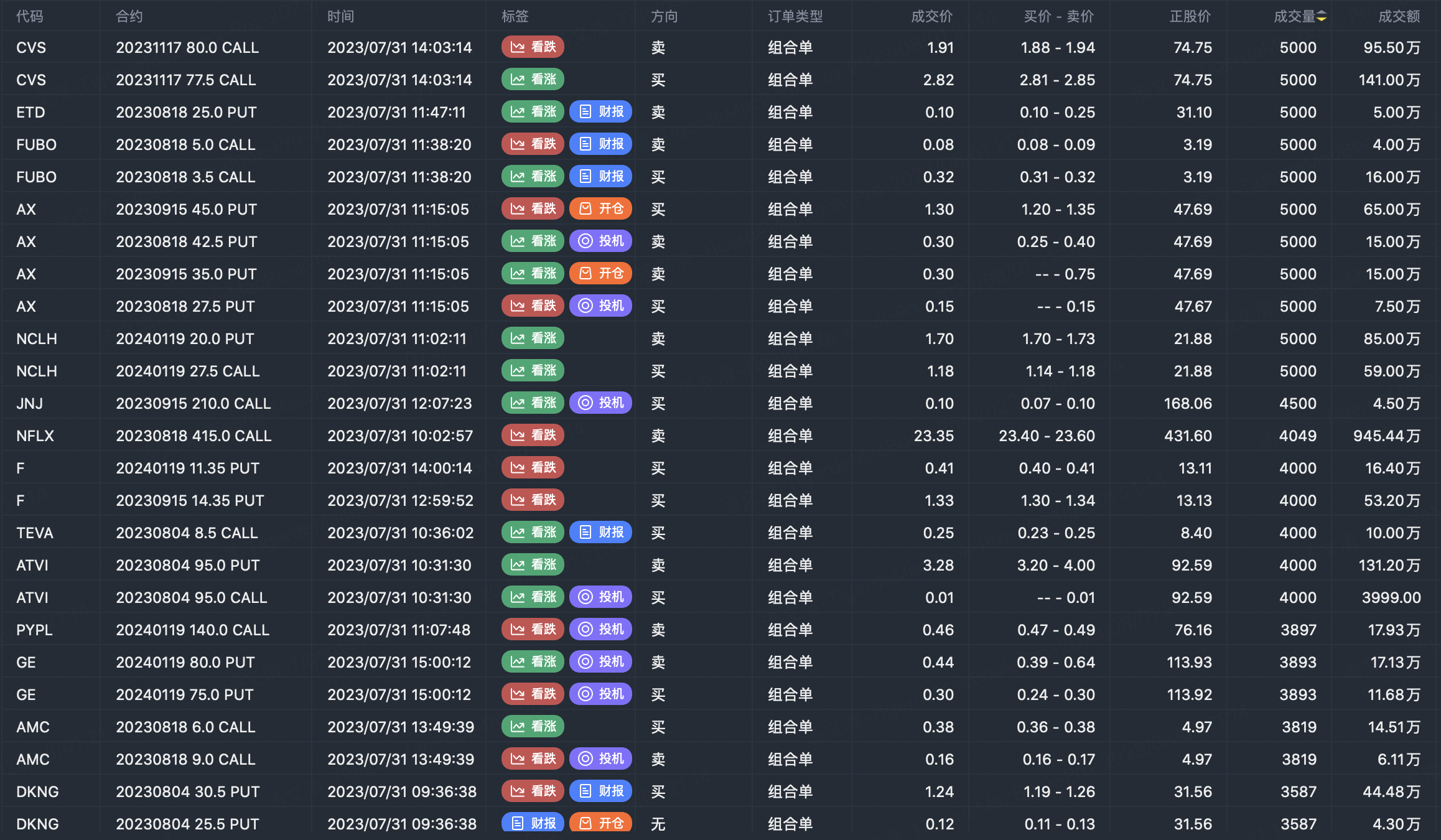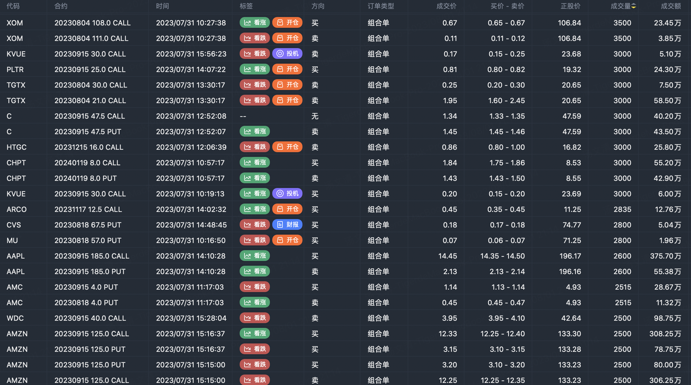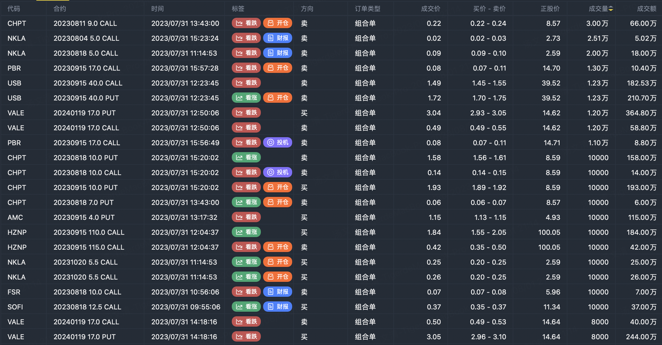 Note: This image data is from Tiger PC. This screening is a significant portfolio of options contracts in the market. Portfolio opening includes a variety of underlying trends, requiring traders to further master the basic knowledge of options for analysis and judgment.