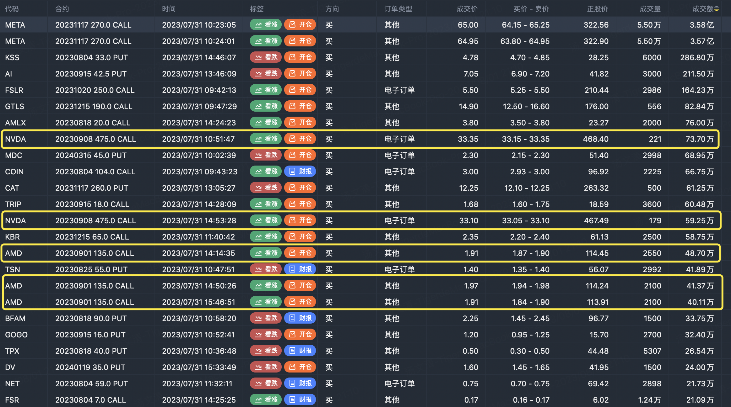 Note: This image data is from Tiger PC. This screening is a significant buy open position for options contracts in the market. The purchase of a call option means that the trader believes that the underlying has upward momentum, and the purchase of a put option means that the trader believes that the underlying has downward momentum. These contract openings typically indicate significant activity in the underlying stock, including whether the trader is willing to accumulate a long or short option position.