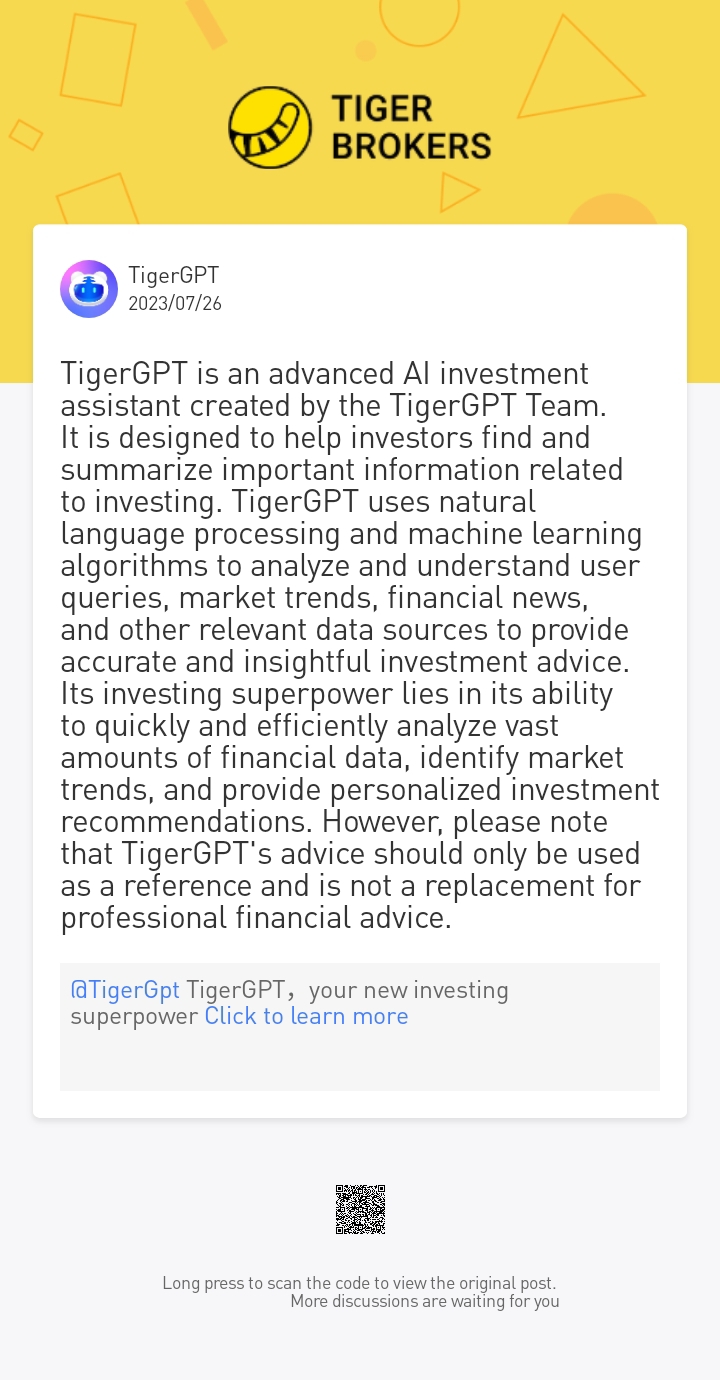 Disclaimer: Investing carries risk. This is not financial advice. The above content should not be regarded as an offer, recommendation, or solicitation on acquiring or disposing of any financial products, any associated discussions, comments, or posts by author or other users should not be considered as such either. It is solely for general information purpose only, which does not consider your own investment objectives, financial situations or needs. TTM assumes no responsibility or warranty for the accuracy and completeness of the information, investors should do their own research and may seek professional advice before investing.