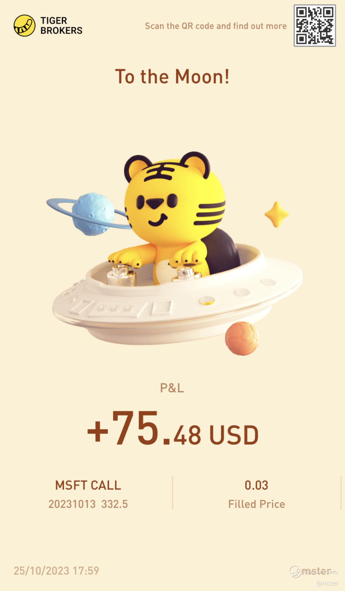 Following a positive earnings report, MSFT is now showing signs of a resurgence, and I am optimistic about its potential to surpass its previous peak of $360 in the upcoming trading weeks. I plan to monitor the upward momentum closely and will consider closing the Leap Call option upon encountering resistance.
