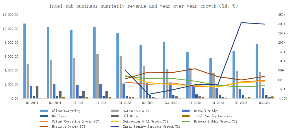 In terms of revenue growth, Intel's performance ushered in a significant inflection point. According to the fourth quarter of $14.6-15.6 billion revenue forecast, Intel will return to growth, and is expected to achieve double-digit growth!
