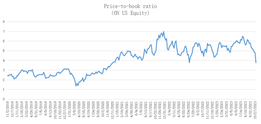 At present, ON Semiconductor's price-to-book ratio is 3.8 times, falling back to 2021. If it continues to decline, it may open the upward space: