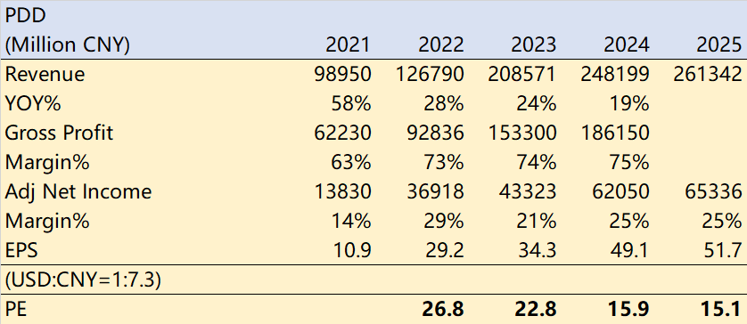 Regarding at PDD's performance and expectations, it cannot be considered "expensive". By estimating its revenue and profit levels based on the current market expectations and then adjusting it with Pinduoduo's better-than-expected performance.