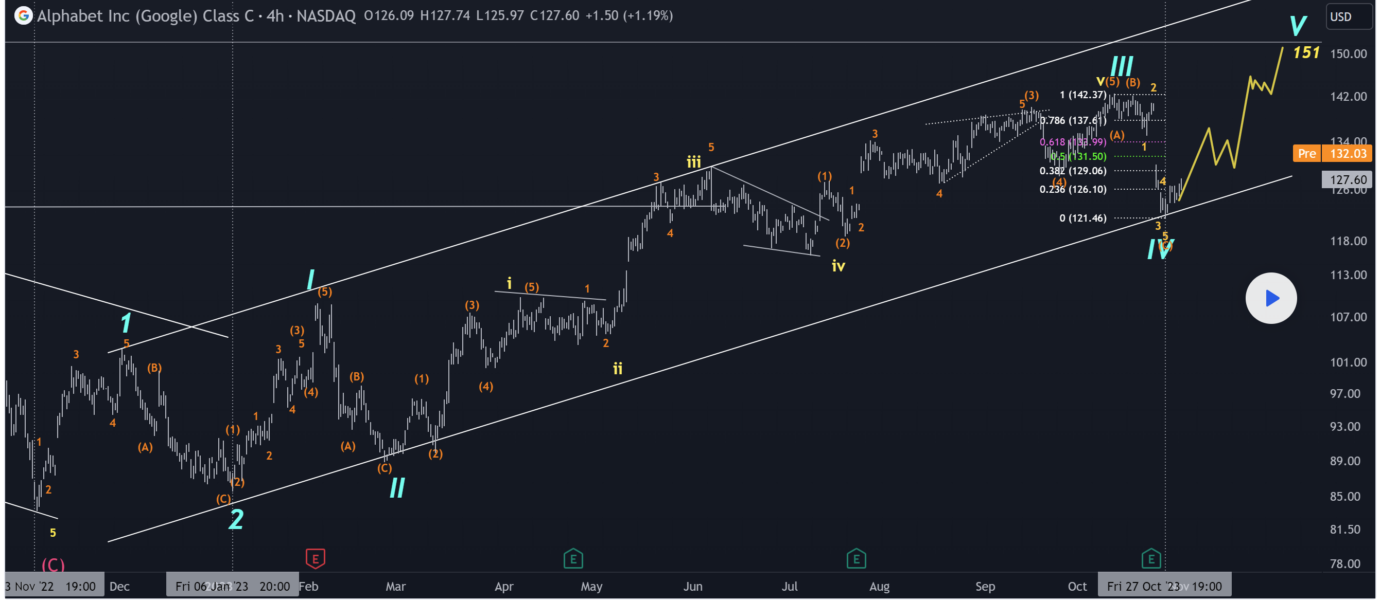 Google is all set to move up in wave V of 3 towards the 150$ mark.