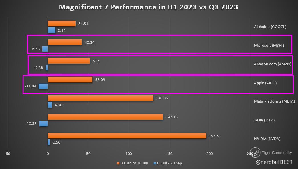 Magnificent 7 Performance in H1 2023 vs Q3 2023
