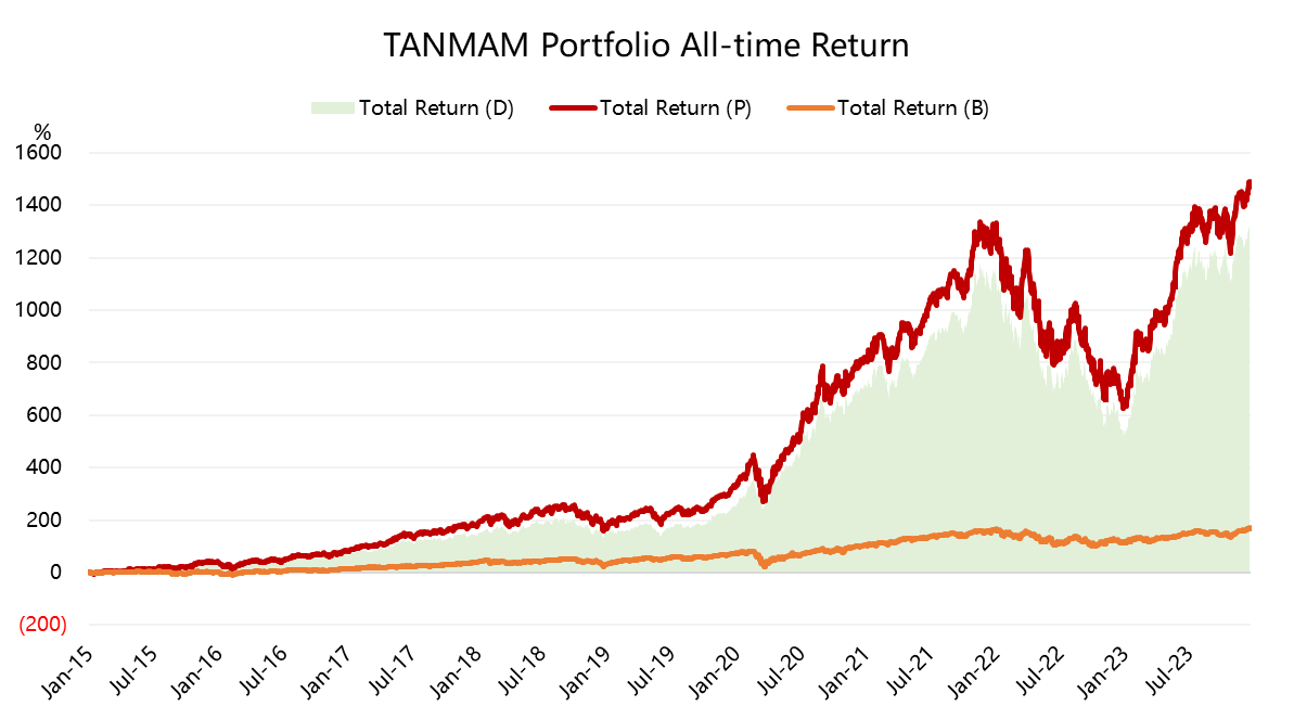 We will combine the seven companies with the highest weight into an investment portfolio called the "TANMAM" portfolio. By the end of the year, the excess return of the big tech portfolio reached a new high.