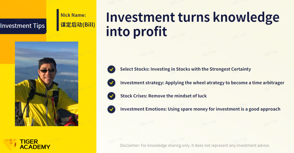 In dealing with such stock crises, Bill is resolute: "Remove the mindset of luck; stocks require decision-making and immediate action."