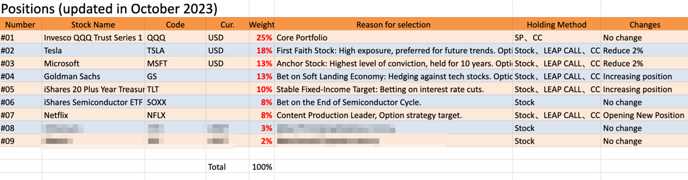 Additionally, from the table above, it can be seen that Bill, besides regular stock trading, is also adept at options trading. Strategies like Sell Put, Covered Call, and other basic options strategies are part of his routine operations.