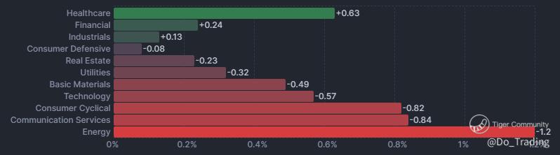 Energy and consumer discretionary sectors underperformed, while health care and financials outperformed. The Nasdaq lost 0.56%, with technology stocks mostly falling.