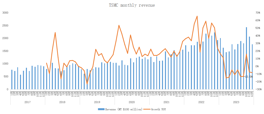 According to $Taiwan Semiconductor Manufacturing(TSM)$ 's December sales data announced today, monthly sales reached NT$176.3 billion, a year-on-year decline of 8.5%, but exceeding analysts' consensus expectations: