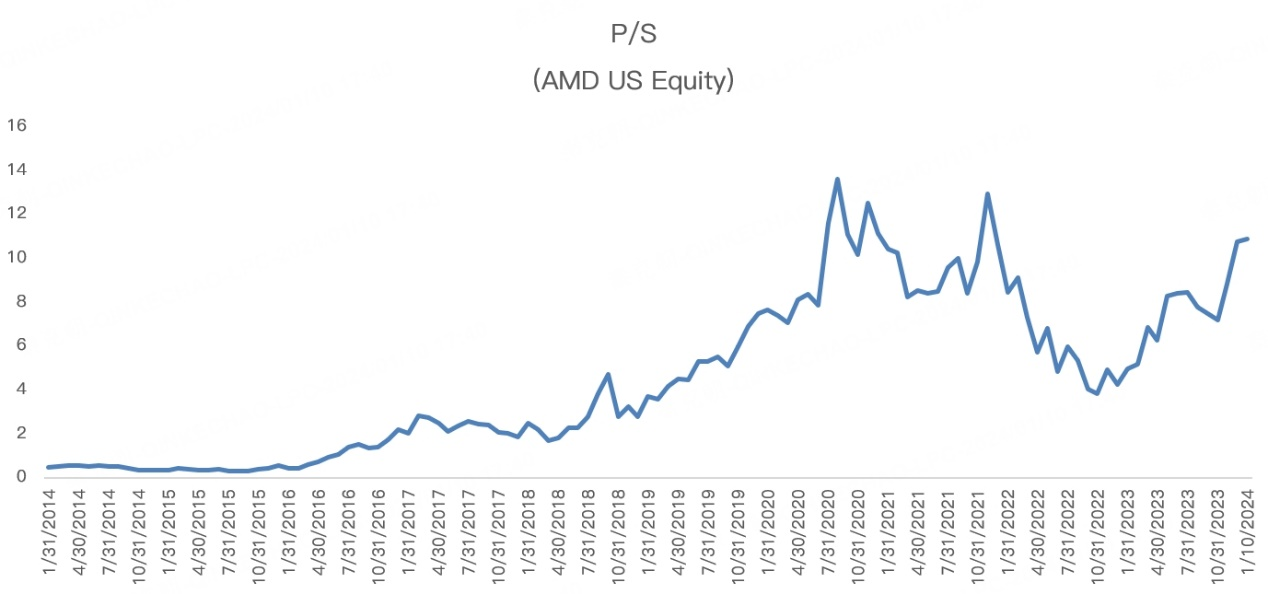From AMD's current market-to-sales ratio valuation, there is still room compared to the historical high. Moreover, analysts expect AMD's revenue growth rate to reach 17% in 2024, and a new historical high is inevitable.