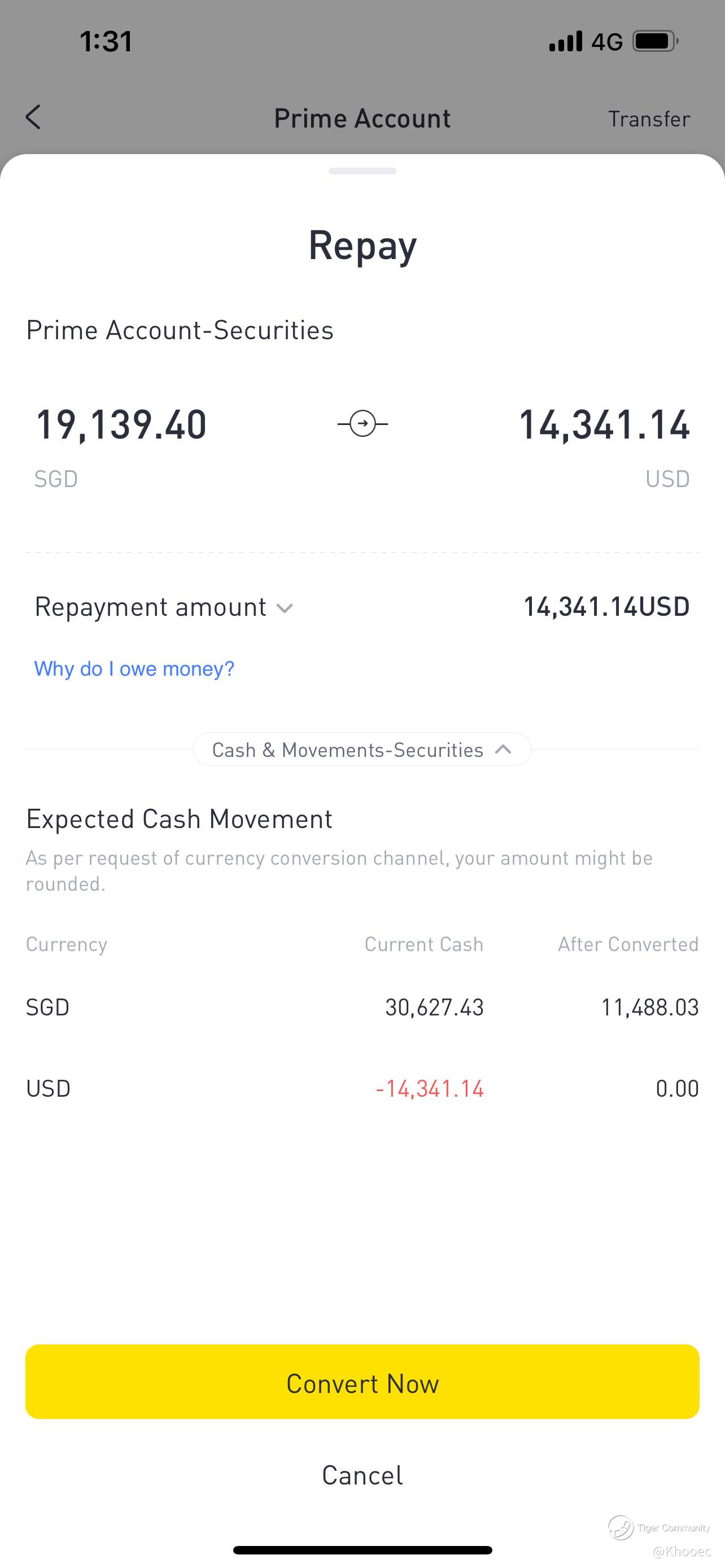 should have use wise app to exchange first. Tiger exchange rate is pretty low. Just sharing[Thinking]