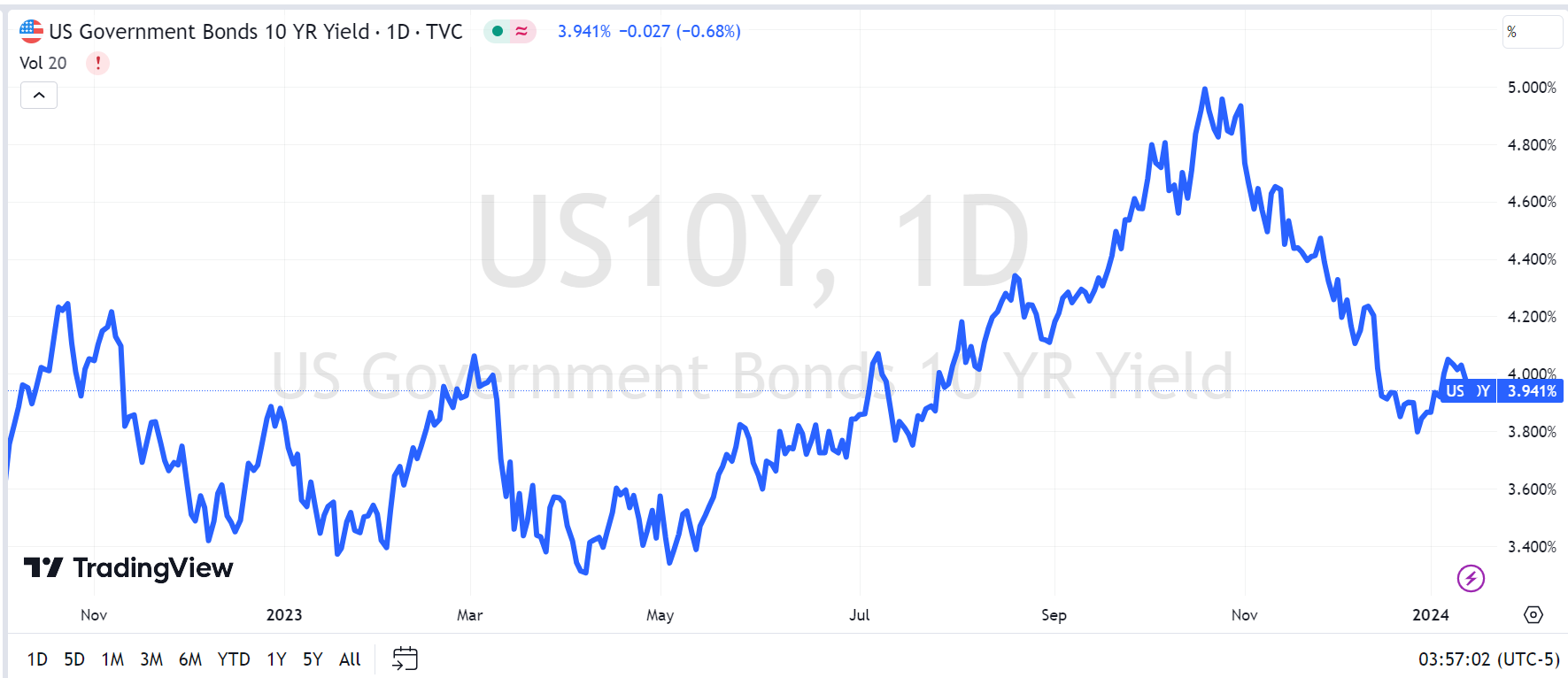 At the beginning of 2023, with the optimism that US core inflation would peak and fall in October 2022 and the judgment that US growth was gradually "soft landing", the market once expected the end of interest rate hikes in early 2023 and the beginning of interest rate cuts as early as during the year, and the 10-year US bond once fell to a low of 3.3%, which is a déjà vu with the current market expectation that interest rate cuts would start in March 2024, and that interest rate cuts would start in March 2024, which is the same as the current market expectation.
