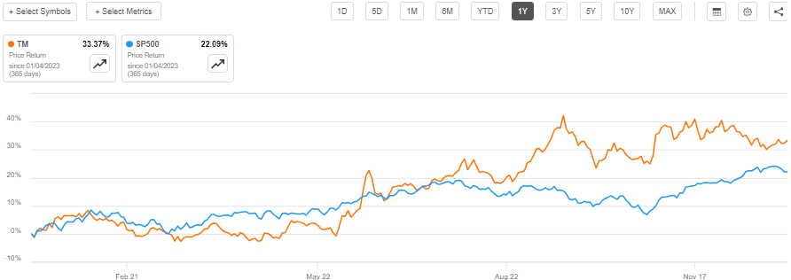 Toyota 1Y Stock Performance Vs. S&P 500 (SA Premium)