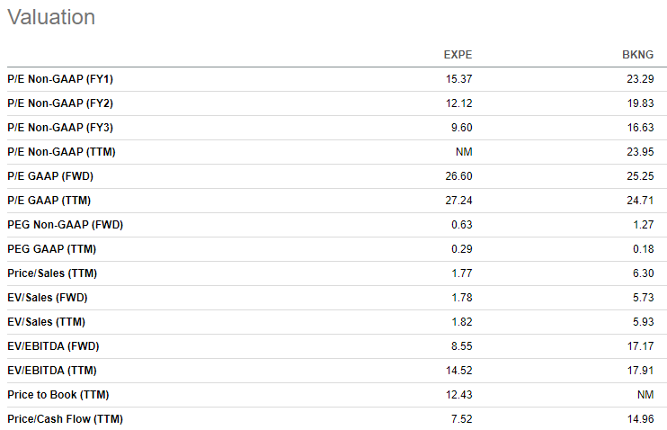 Expedia vs Booking Holdings Valuations (SA Premium)