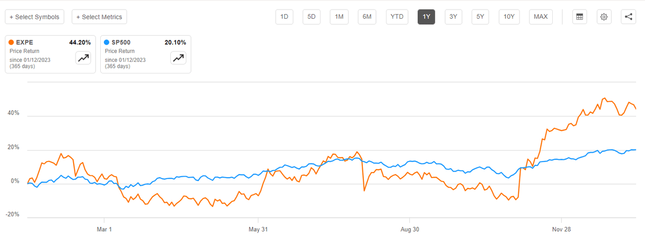 EXPE Stock vs S&P 500 (1yr) (SA Premium)