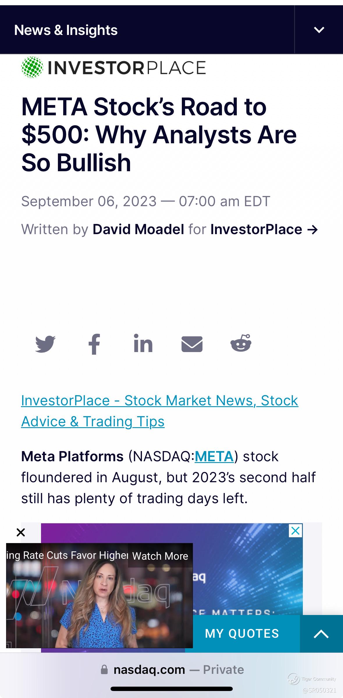 $Meta Platforms, Inc.(META)$ will reach $500 but also risk of going down after reaching that point, the person wrote on 6 Sept 2023 and he will see it come true in 2024 😊