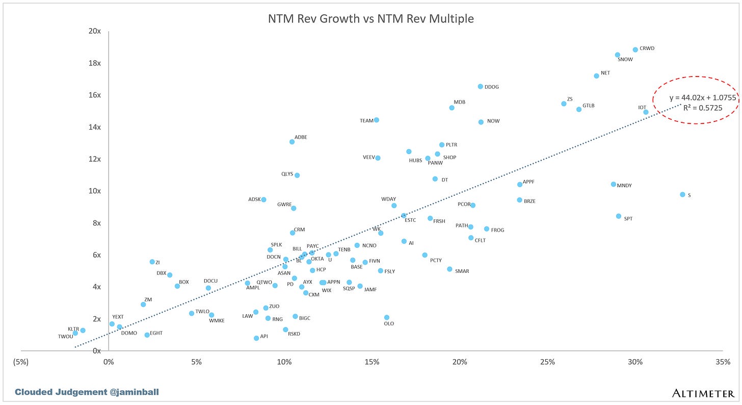 Scatter Plot of EV / NTM Rev Multiple vs NTM Rev Growth