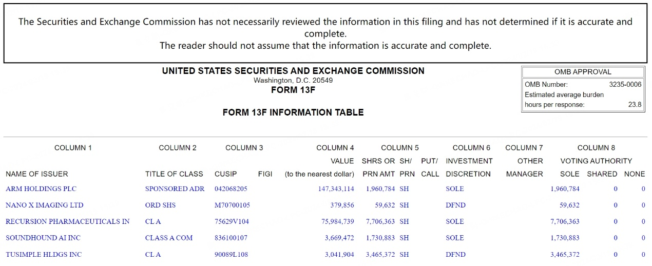 Let's start with Arm, which has the largest holding. As of the cutoff date of the 13F (December 31st), Nvidia's holding value reached $147 million, accounting for 63.95% of its investment portfolio.