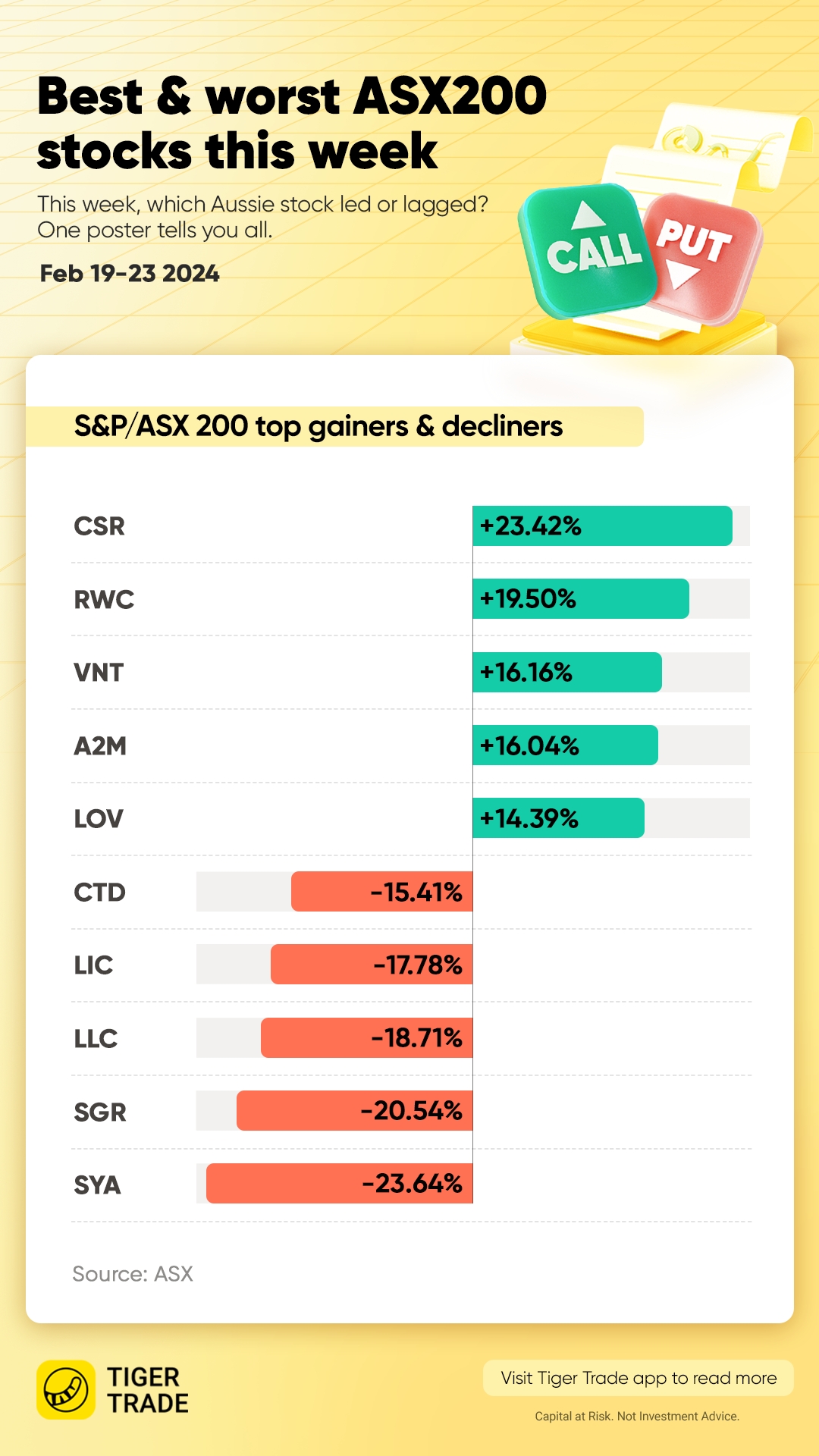 As of the close on Friday, $S&P/ASX 200(XJO.AU)$ closed at 7,643.60 points, down 0.19% in the past 5 days.
