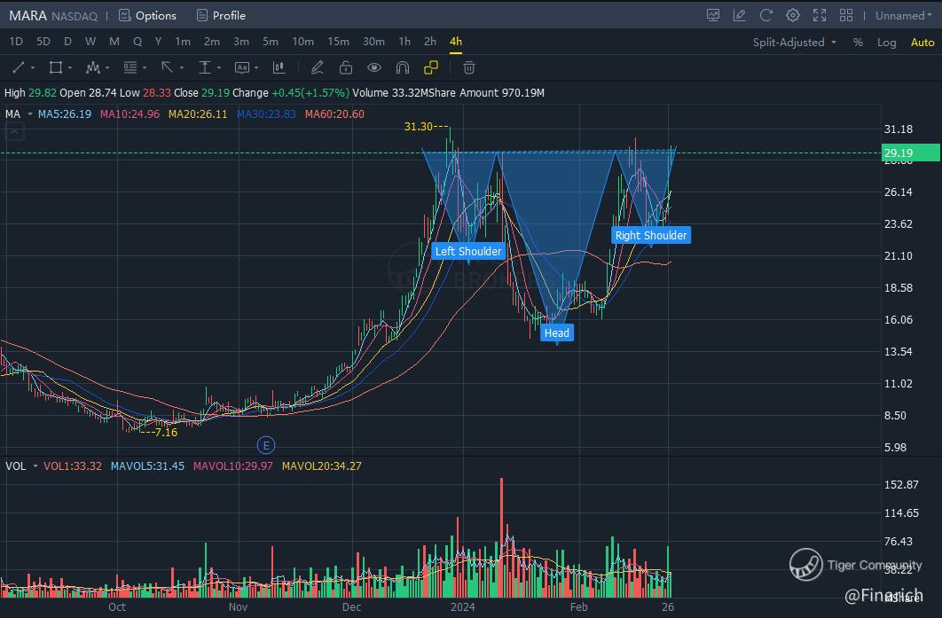$Marathon Digital Holdings Inc(MARA)$ who needs silicon when you have magic internet money? Upcoming earnings and possible inverse head and shoulder formation offer a potentially favorable risk-reward proposition.