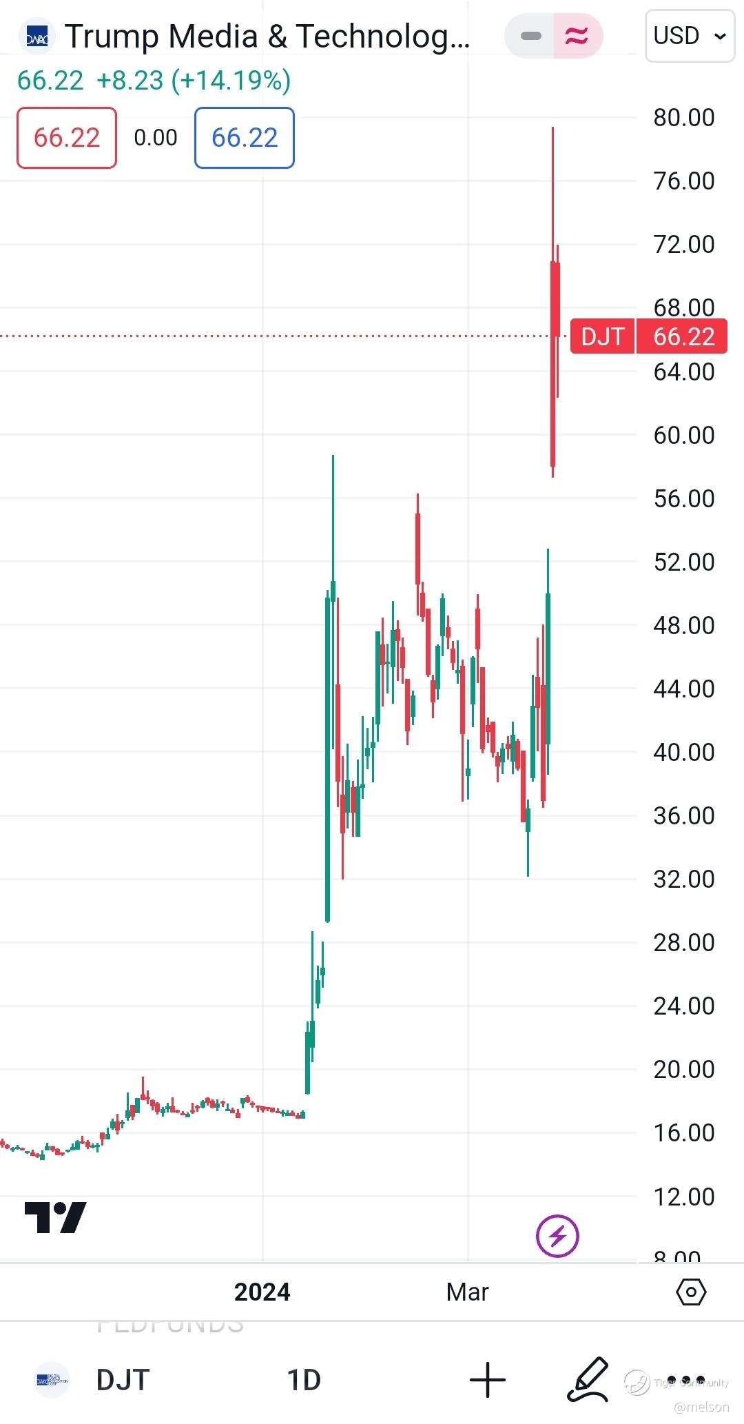 $Trump Media & Technology(DJT)$ meteoric rise fits the owner trump. this year we will have a presidential rematch between biden and trump. this is one of the intangible assets of djt. another one is trump's fame even if he doesn't win the election.