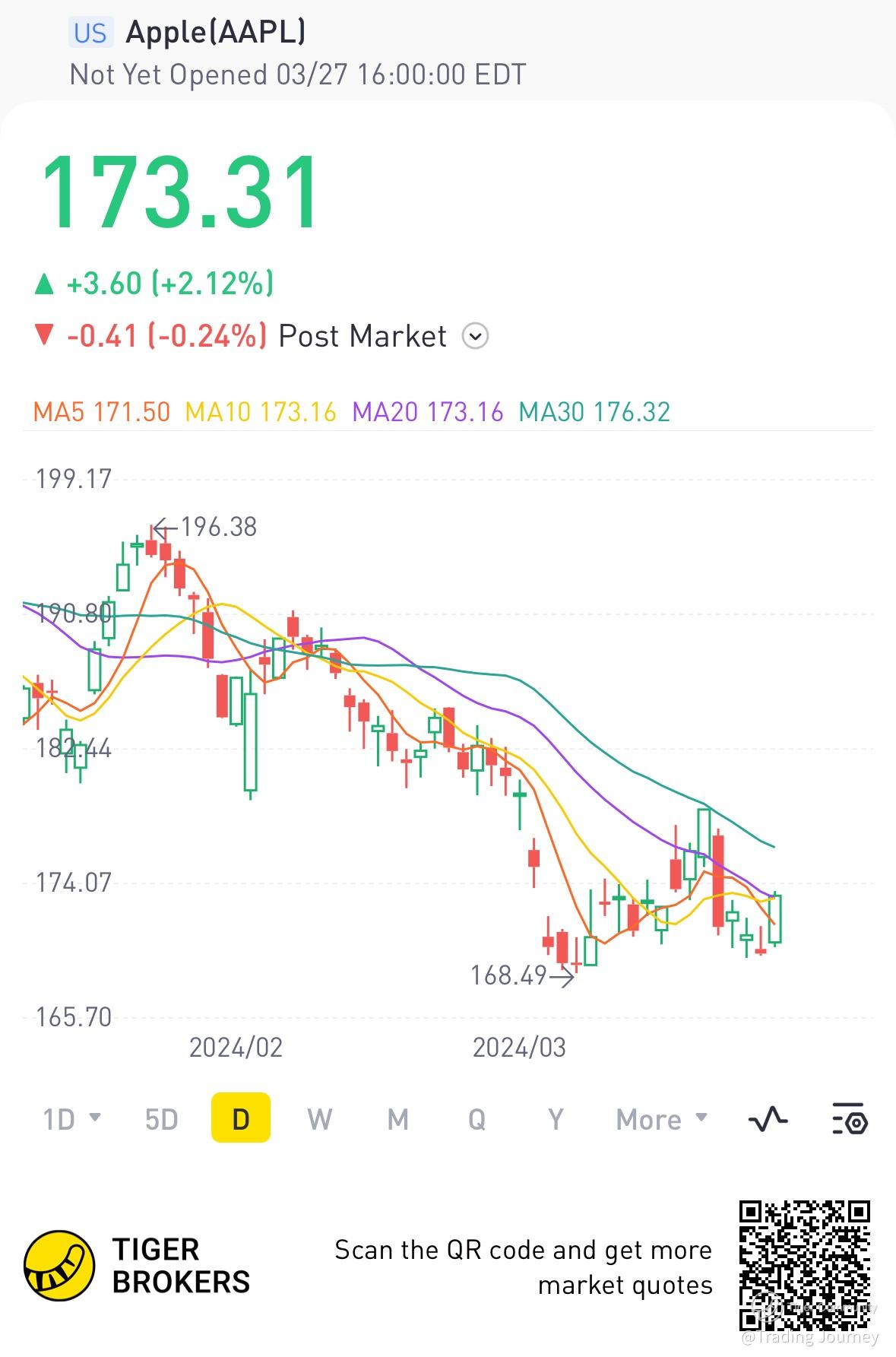 $Apple(AAPL)$ .. would it edging upwards today onwards. Strong Support at $168.50