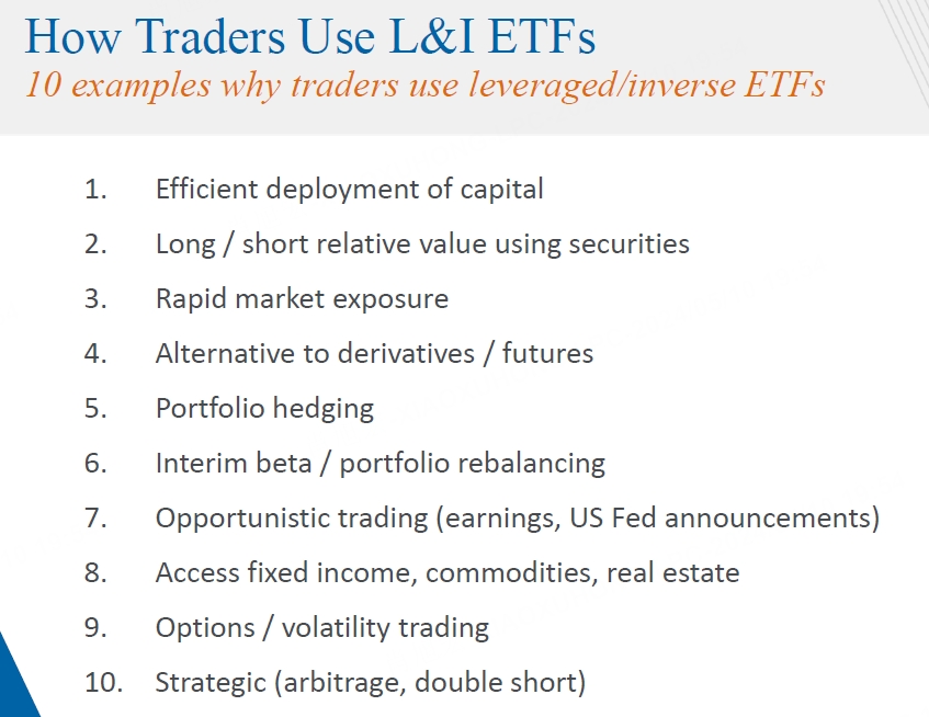 Below are some slides from Grace Chiu, Direxion Managine Director Asia, from her live sharing on May 7th. She explained the basics of leveraged and inverse ETFs in a very impressive and detailed way. She also highlighted some catalysts that could impact the US equity market in 2024.