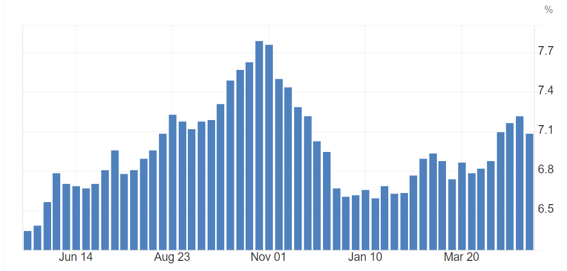 The risk of significant secondary inflation, apart from a slight year-end rebound, is not high. High interest rates are deemed sufficient to suppress demand. However, the risk arises from premature expectations of successful inflation resistance, mirroring the situation since the beginning of the year.