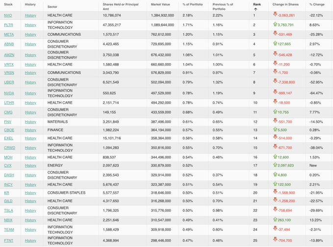🚀Top 5 positions: 1. $Novo-Nordisk A/S(NVO)$ , 2.18% 2. $Palantir Technologies Inc.(PLTR)$ , 1.71% 3. $Meta Platforms, Inc.(META)$ , 1.20% 4. $Airbnb, Inc.(ABNB)$ , 1.15% 5. $Amazon.com(AMZN)$ , 1.06%
