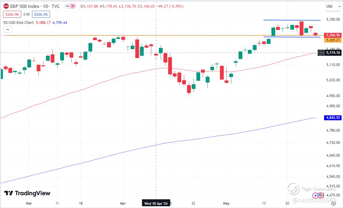 We saw the $S&P 500(.SPX)$ closing back below the 5,300 level, after losing 0.74%. Last week Friday’s rebound was retraced.