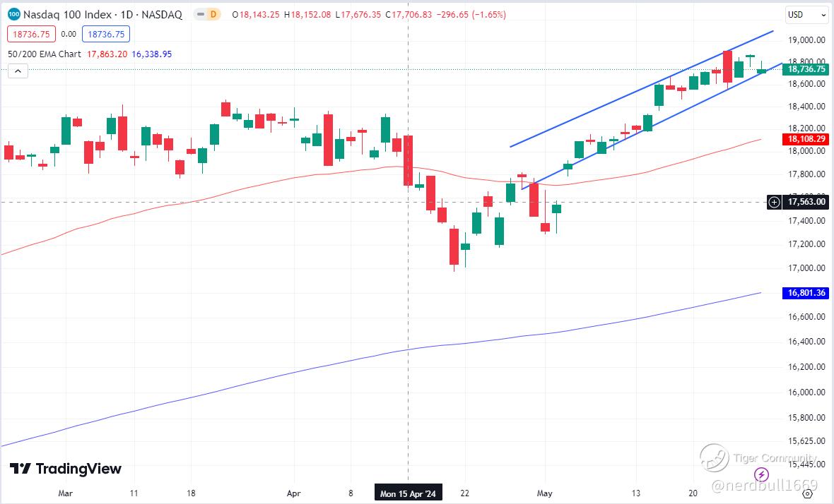 Last week, the technology-focused $NASDAQ 100(NDX)$ reached a new record high of 18,907.54 on Thursday before closing lower. That looked like we are going to see intensive profit-taking coming, but on Friday, we saw that Nasdaq making gains again.