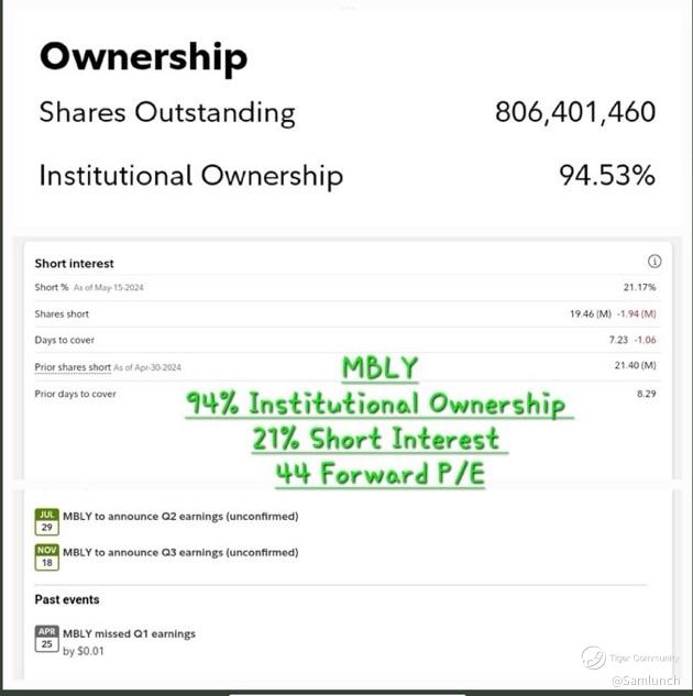 Mobileye has 94% institutional ownership with a big chunk of that being Intel. The CEO of Mobileye will tell you that the strategic ownership gives them access & security in all its chip making efforts & they receive parts/tech from Intel that they use in their systems as well. Intel being a major shareholder is part of my bull thesis when 21% of the MBLY shares are held short. With so much institutional ownership one has to wonder how there is such a huge short float. Cause just like gambling degenerates the shorts here are naked & leveraged up. With operating income down 50% the shorts have dug in. But have they over stayed their welcome on a company that still has a Forward PE of 44 & is highly profitable in all the right technologies as autonomy will be at the forefront of every major tech we have including robotics & AI
