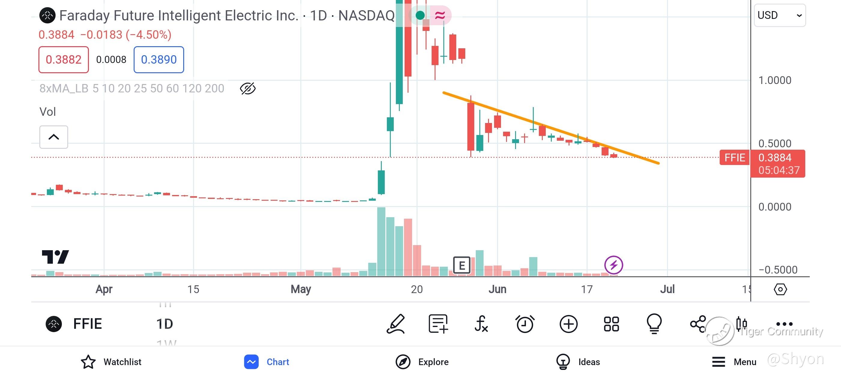 Technical wise, it seems like another game over is approaching Faraday Future. The stock is unable to sustain the big rally happened in mid May. Since then, the share price continued to retrace significantly and I believe, under the orange coloured short term downtrend line resistance, $Faraday Future Intelligent Electric Inc.(FFIE)$