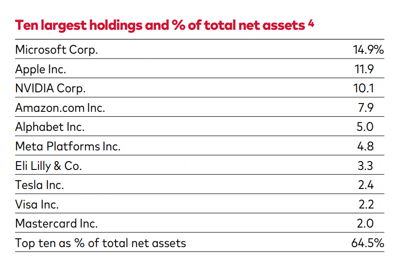MGK has an expense ratio of 0.07%. The portfolio holdings are as follows: