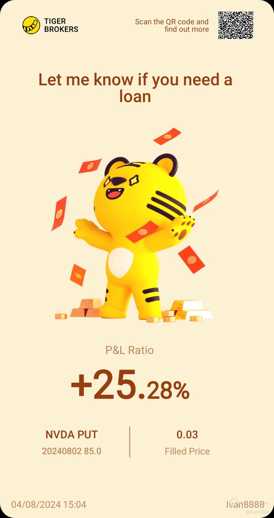 $NVDA 20240802 85.0 PUT$ I bought 0.01 and sold 0.03