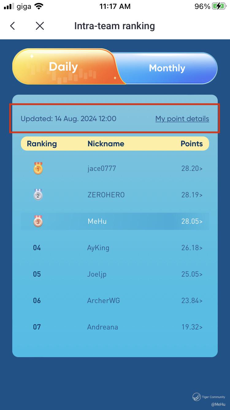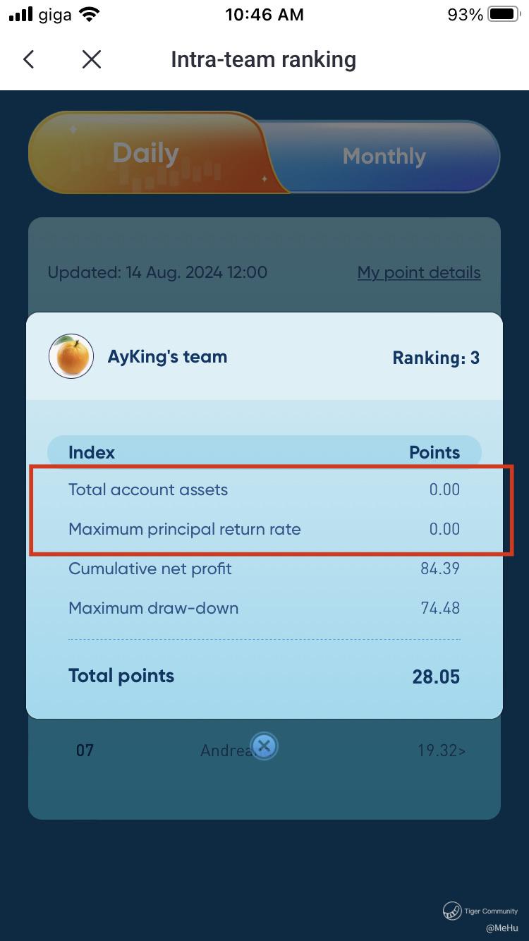 Today our ranking is very bad, 207th position. Last night stock market not bad, but our team performance everybody score less than 30 points (see 2nd picture). If you click "my points details", you'll realized that 2 sections they gave 0 points. This is impossible asmarket is doing well last night. I had feedback this to the hotline. Also, this is not the first incident, it happened before few weeks ago. It could have been more such case as I did not check everyday.