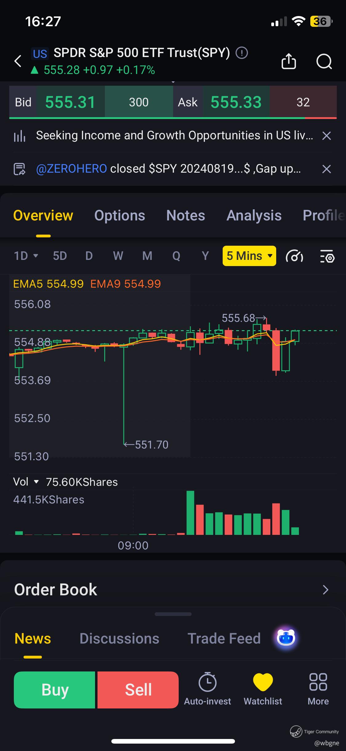 $SPY 20240819 555.0 CALL$ we start the week with a nice win. Bought right after the big red candle on the 5 min chart. It broke all my levels all of a sudden, looked like someone going for stop hunts. Aaand we're done for the morning!