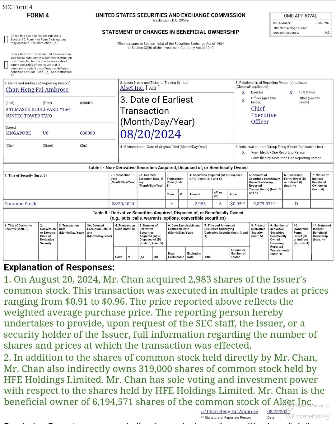 US Alset up 10.63%. Boss chan bought US alset again. đ