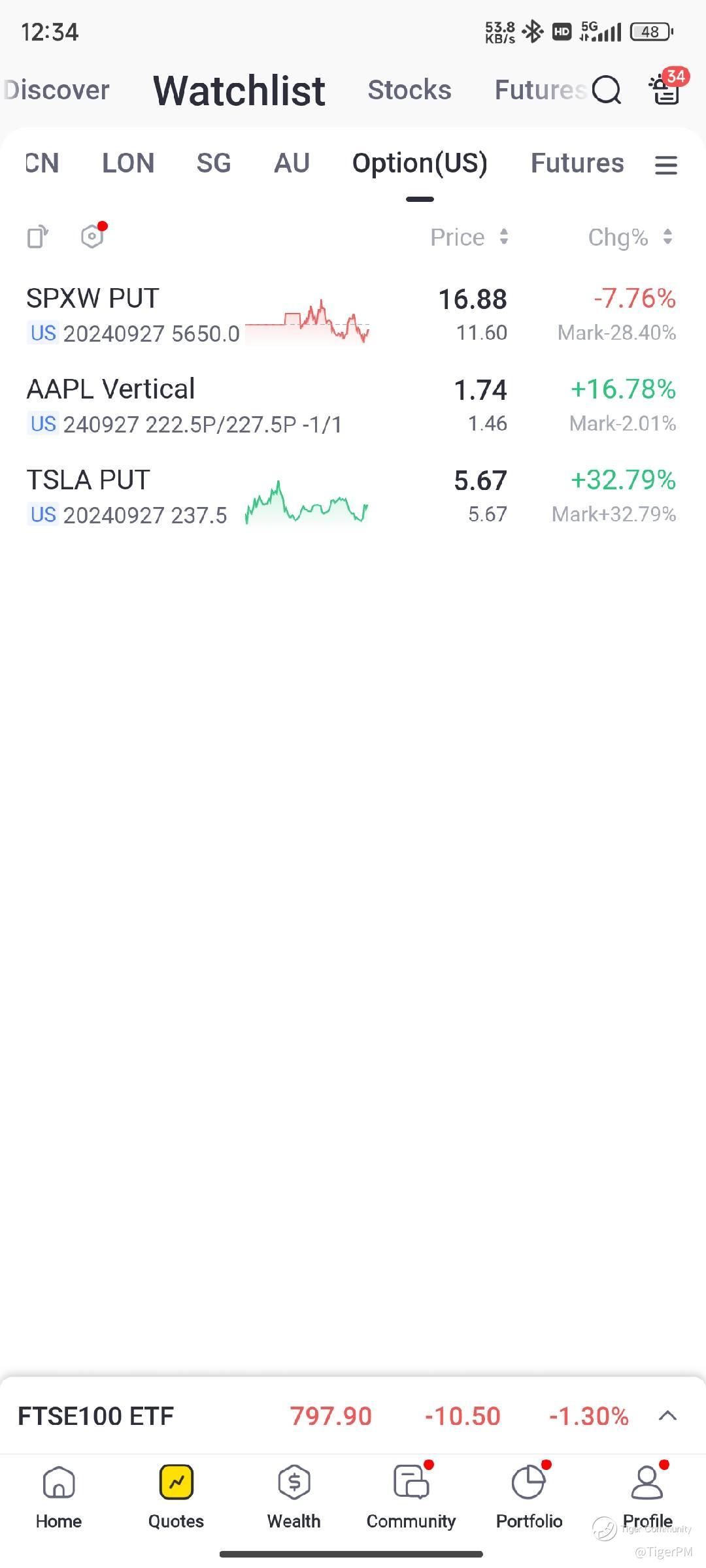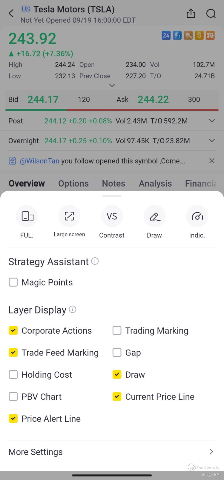 In the Settings - Quote Setting, turn on the mark price switch, and you can view the mark price of options in the watchlist and detail pages, which helps to better judge the market value of options.